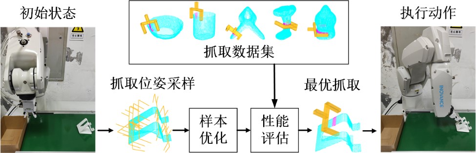 该研究方向致力于解决智能制造中的感知难题,利用机器视觉、多传感器融合以及三维重建等理论方法,实现工业机械臂对无序及遮挡工件的分拣、未知物体的抓取等。研发动态物料的非接触式体积测量系统,提高皮带输送机物料体积检测的精准度与便捷性。相关研究成果可应用于物流分拣、智能工厂等领域。
