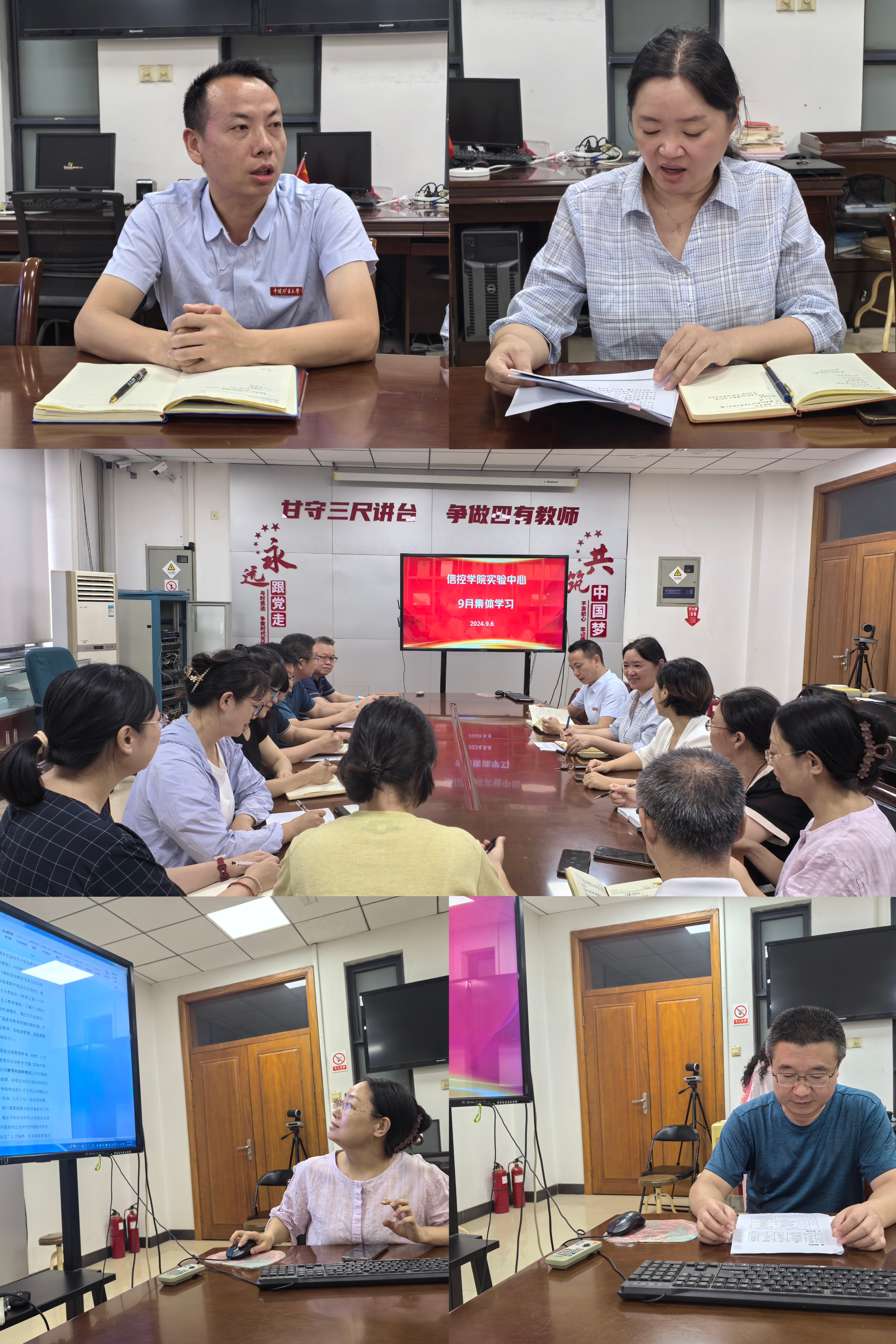 实验中心在A311会议室举行9月份集体学习。副院长陈平,实验中心全体成员及参加会议。会议由中心主任张晓春主持。